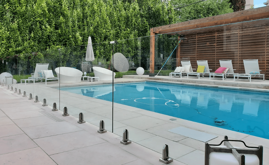 Glass railings make for stylish pool fences, ensuring safety while keeping the area visually open.